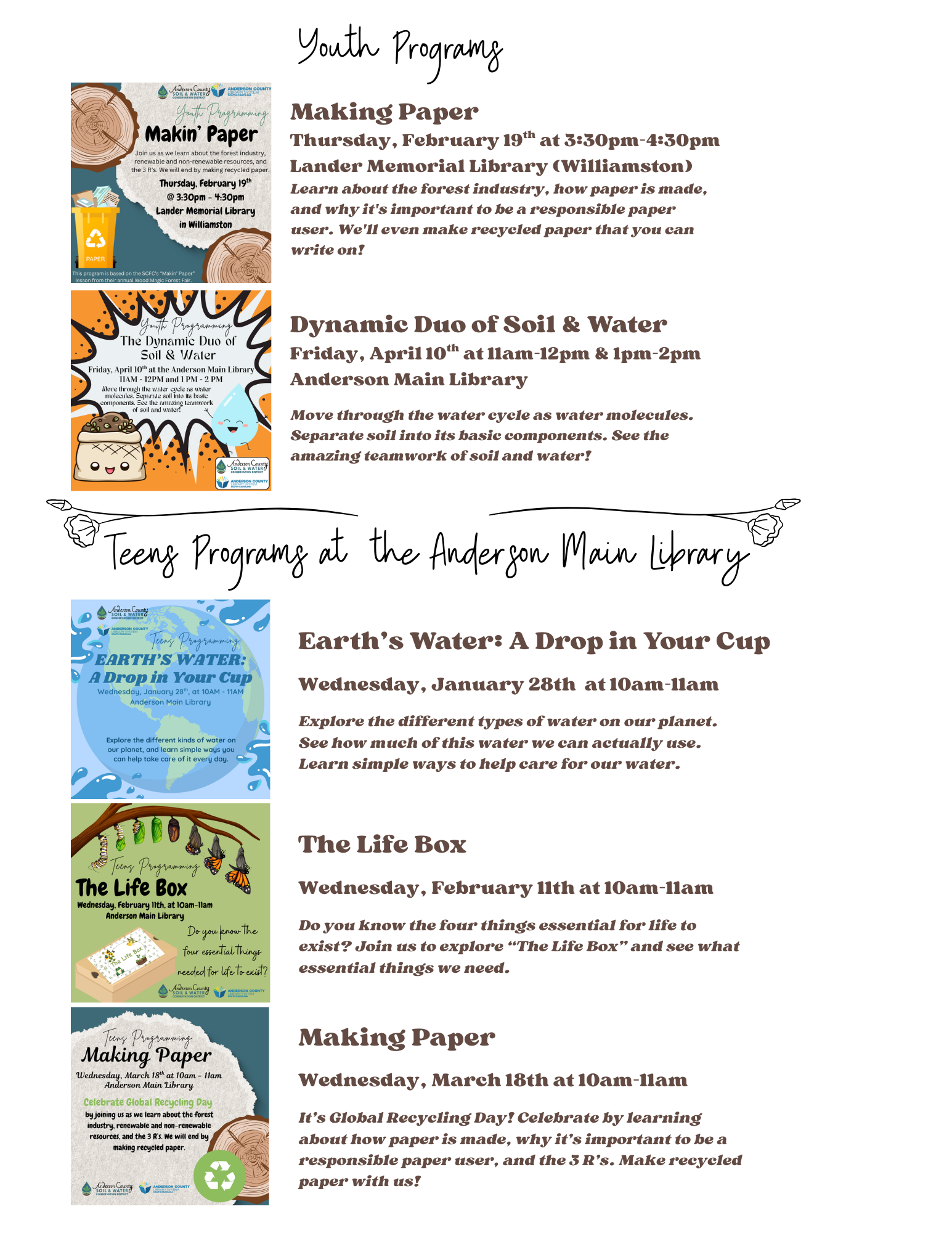 Web of Life (above) at the Lander Memorial Library (Williamston).